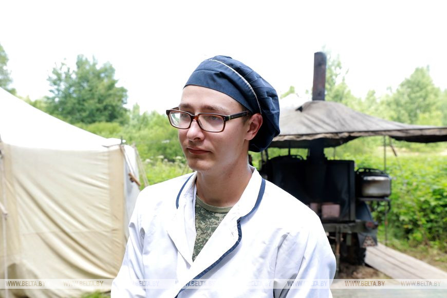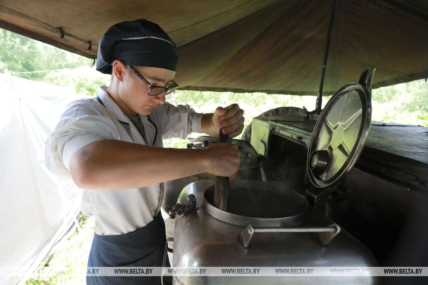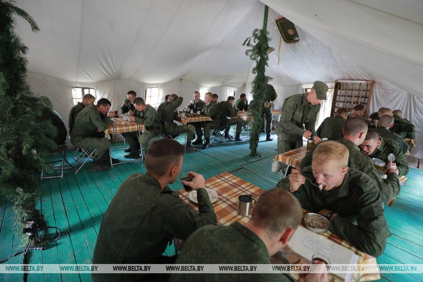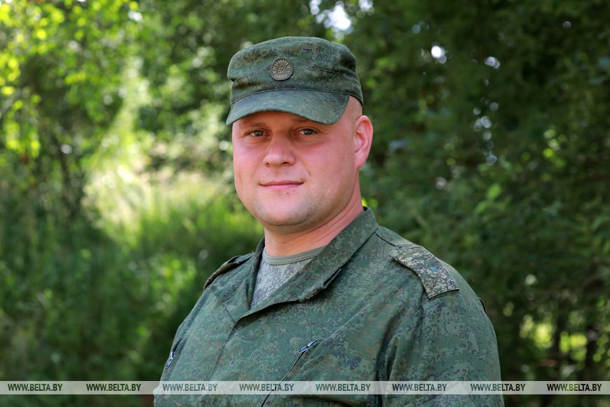 После настоящего армейского обеда мы познакомились с Сергеем Поплавным. Молодому человеку 25 лет и родом он из Гомеля. В армии служит в резерве.