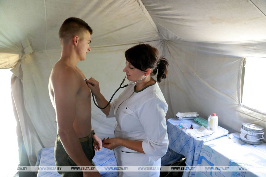 Еще один важный ритуал армейской жизни - ежедневный контроль самочувствия солдат. "Несмотря на то, что сейчас мы располагаемся в лесу и контакты с посторонними сведены к минимуму, ежедневно проверяем самочувствие ребят. Измеряем температуру, интересуемся, есть ли жалобы на здоровье. Ежедневные медицинские осмотры проводим и в казармах, - рассказала фельдшер Оксана Черненькая. - Я здесь нахожусь постоянно, потому, если кто-то из ребят почувствует недомогание, помощь всегда придет вовремя".