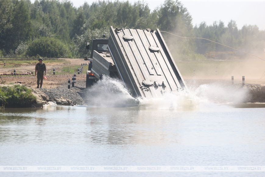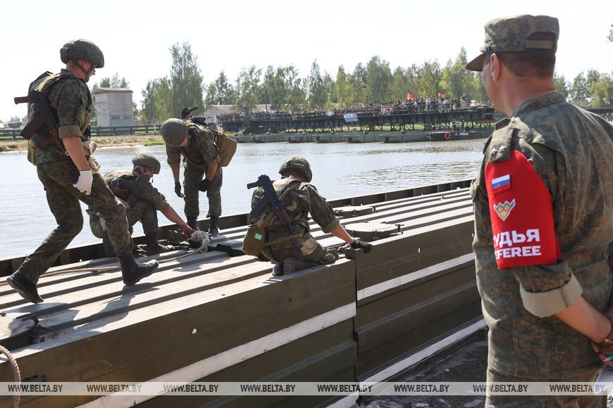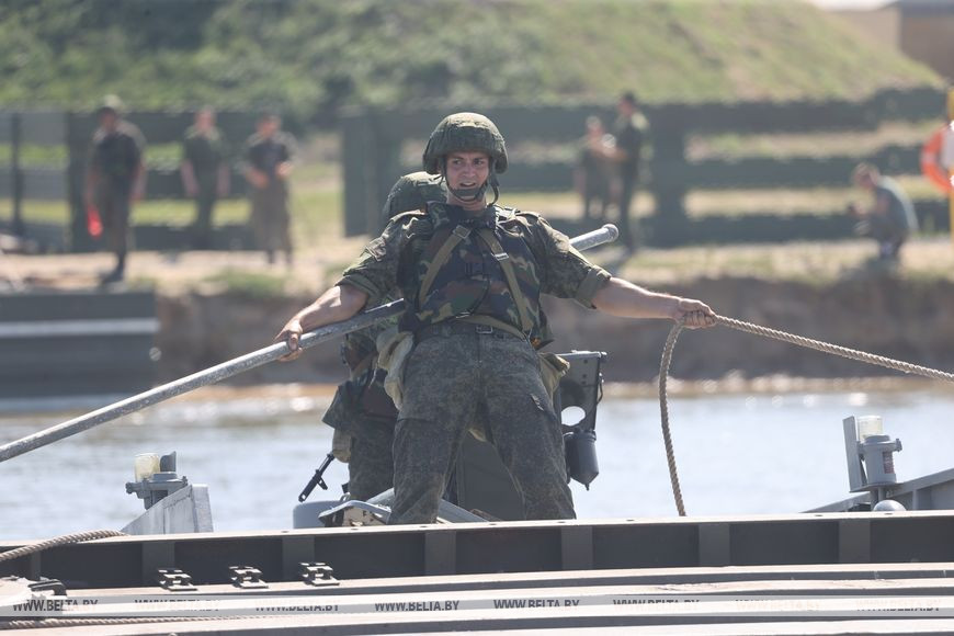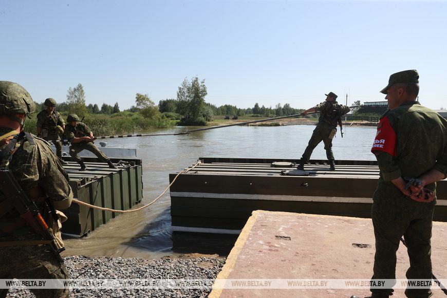 Армейские международные игры проходят сразу в нескольких странах, Беларусь в этом году принимает три конкурса: "Уверенный прием", "Стальная магистраль" и "Полярная звезда". Корреспонденты БЕЛТА отправились в Слуцкий район, чтобы увидеть, как белорусские воины-железнодорожники понтонных подразделений будут соревноваться с военнослужащими из России на этапе "Понтонер" конкурса "Стальная магистраль".