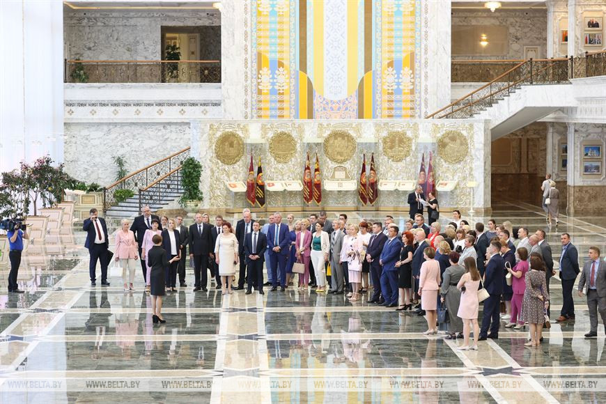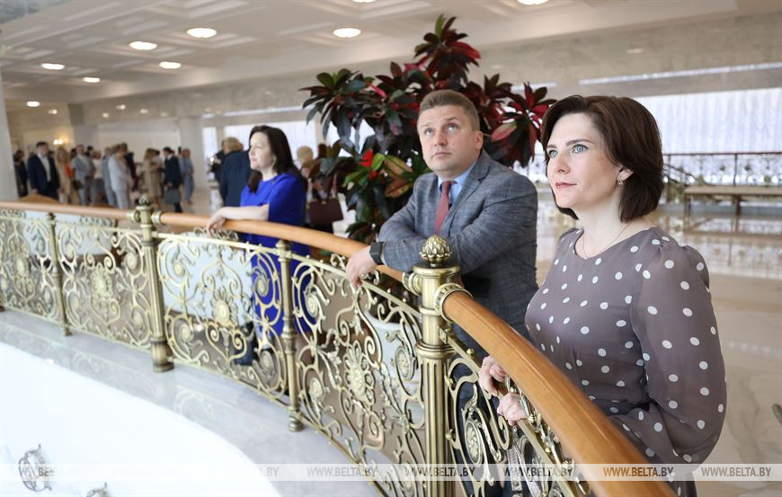 Медики знакомятся с Дворцом Независимости, восхищаются созданным белорусскими мастерами. А ведь здесь есть и их вклад, конечно же, невидимый, но твердый. Ведь только здоровая нация может созидать дворцы и растить талантливых мастеров, создавать ноу-хау в медицине и науке.