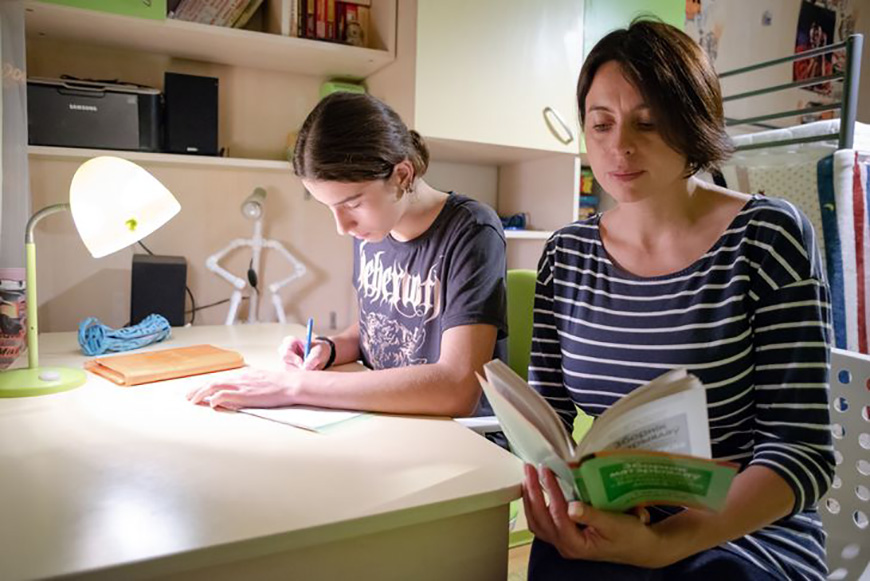 Пока ведем разговор, Марина успевает не только с выпечкой справиться, но и бытовые дела уладить, и с младшими по телефону поговорить, выслушать, похвалить, и старшему с уроками подсказать. "Мама - мой друг. Она меня очень хорошо понимает. Мы с ней можем долго о чем-то разговаривать, спорить", - признается полушепотом Глеб, пока мать отвечает на звонок по работе - нужно обсудить важную съемку.