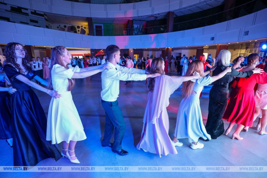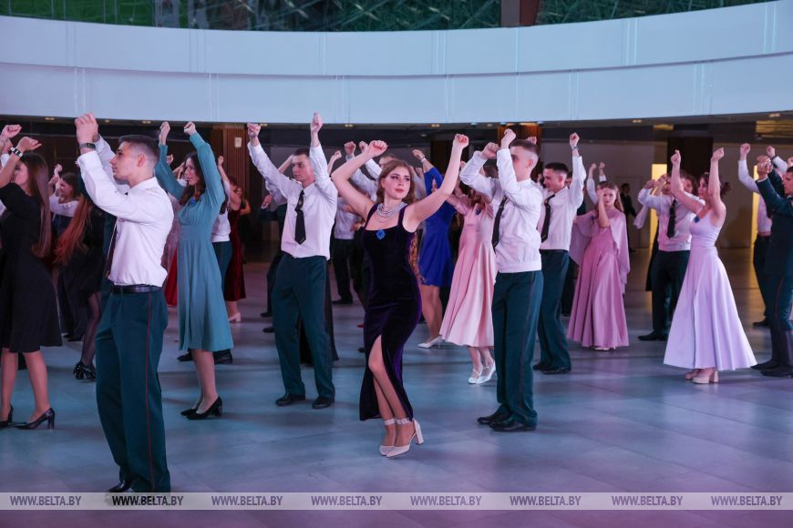 Благотворительные молодежные балы параллельно проходят во всех областных центрах Беларуси и Солигорске. Между городами провели прямое включение.