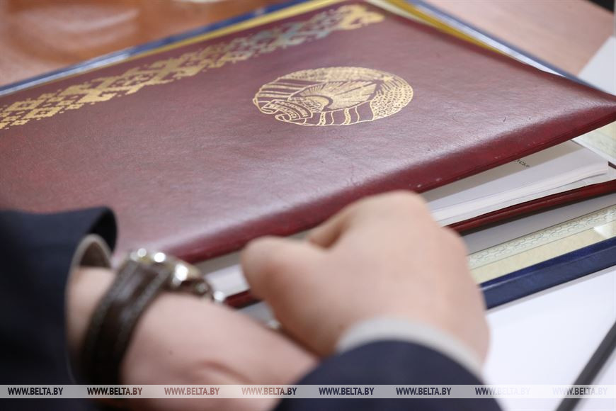 Торжественная церемония получения свидетельства о регистрации Белорусской партии "Белая Русь" прошла в Министерстве юстиции. Министр юстиции Сергей Хоменко вручил Олегу Романову свидетельство о регистрации и устав партии.
