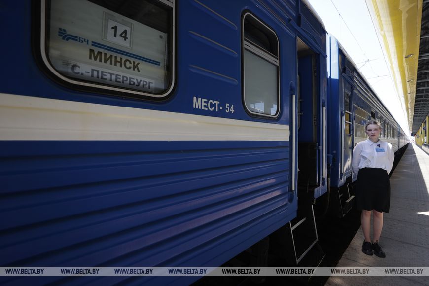 Рабочий график проводника может быть достаточно нестандартным в зависимости от маршрута. Мы увиделись с Надей утром на одной из платформ станции "Минск-Пассажирский", где минчане встречали родственников и друзей с поезда Санкт-Петербург - Минск. "Мой график работы - обычно шесть дней в рейсе, затем шесть дней дома. При этом всегда есть возможность работать больше, если есть желание и необходимость. Рейсы длятся в зависимости от направления, а направления бывают разные, что делает работу интересной и разнообразной. Я работаю на международном направлении Минск - Санкт-Петербург, один оборот рейса занимает два дня, - рассказала студентка. - Этот маршрут следует 14 часов до Питера, там мы стоим еще 10 часов, а потом поезд возвращается в Минске. Быть почти все время на ногах - это, конечно, непросто. Особенно вначале. Но у нас всегда есть возможность перекусить и отдохнуть во время следования поезда. Это помогает восстановить силы и быть всегда наготове выполнять свои обязанности. Со временем привыкаешь, учишься правильно распределять энергию в течение дня. Мне помогает позитивный настрой и понимание, что такая работа требует выносливости и ответственности".