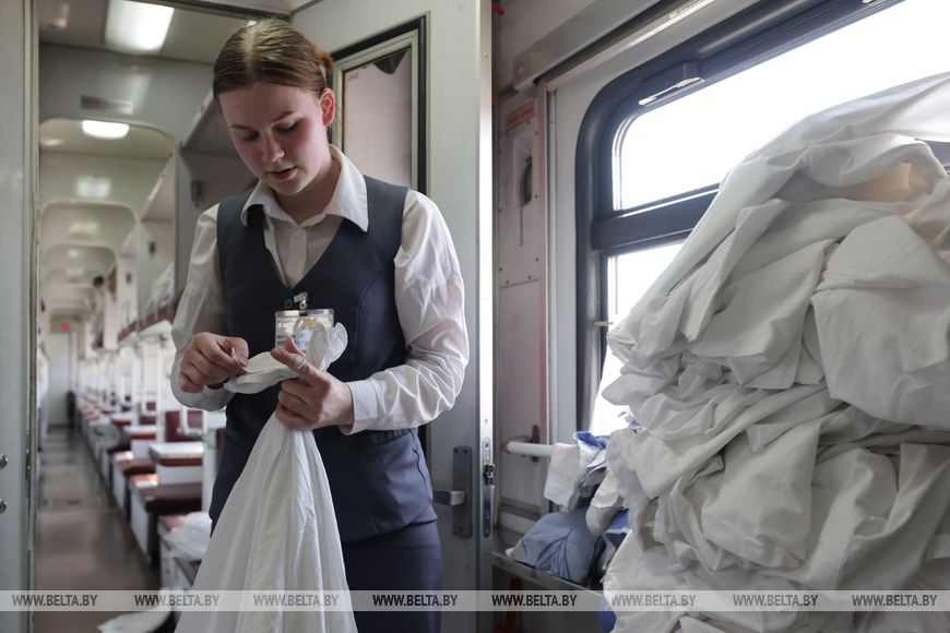 Полезный опыт и тяжелый трудНа этом же поезде мы познакомились с еще одной девушкой - Ангелиной Морозюк. Она окончила в этом году третий курс филологического факультета Белорусского государственного университета. Будущий филолог уже третье лето проводит на колесах пассажирского поезда. "Я не минчанка и работа в студенческом отряде, помимо полезного трудового опыта, дает возможность получить место в общежитии. Кроме того, свои личные деньги, чтобы лишний раз не просить у родителей, никогда не помешают, - рассказала девушка. - Когда пришлось выбирать направление работы в студотряде, то работа проводника оказалась самым хорошим вариантом. А большой бонус - возможность путешествовать, тем более бесплатно".