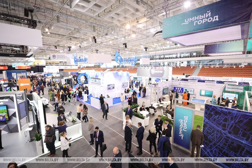 Максим Рыженков выделил проект умной остановки на стенде "Белтелекома". "Этот проект имеет хороший утилитарный характер. Благодаря разработке можно в режиме реального времени увидеть, как ходит общественный транспорт, зарядить телефон, записаться в госучреждения", - отметил он.
