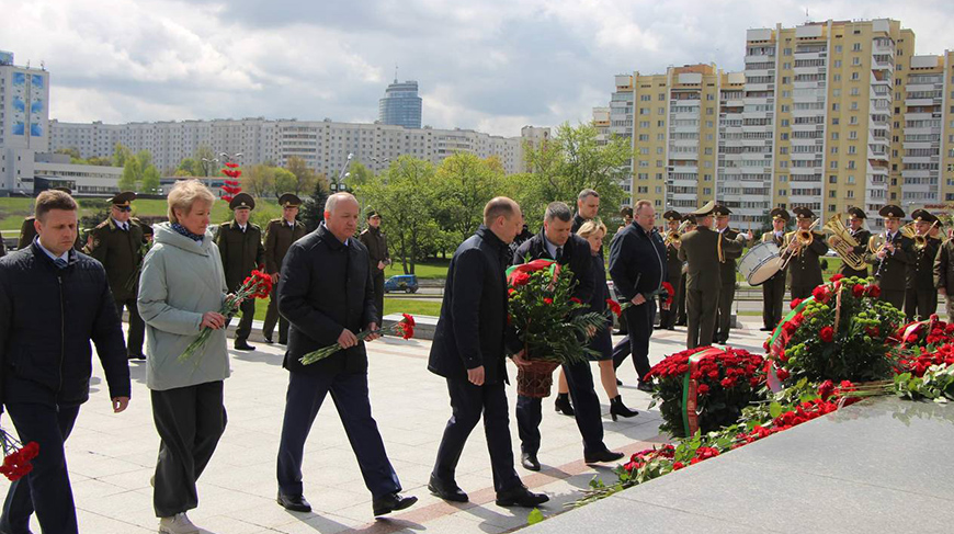 Делегация Министерства финансов во главе с министром возложила цветы к стеле в рамках мероприятий, посвященных празднованию 78-й годовщины Победы советского народа в Великой Отечественной войне, и акции "Беларусь помнит. Помним каждого".-0-