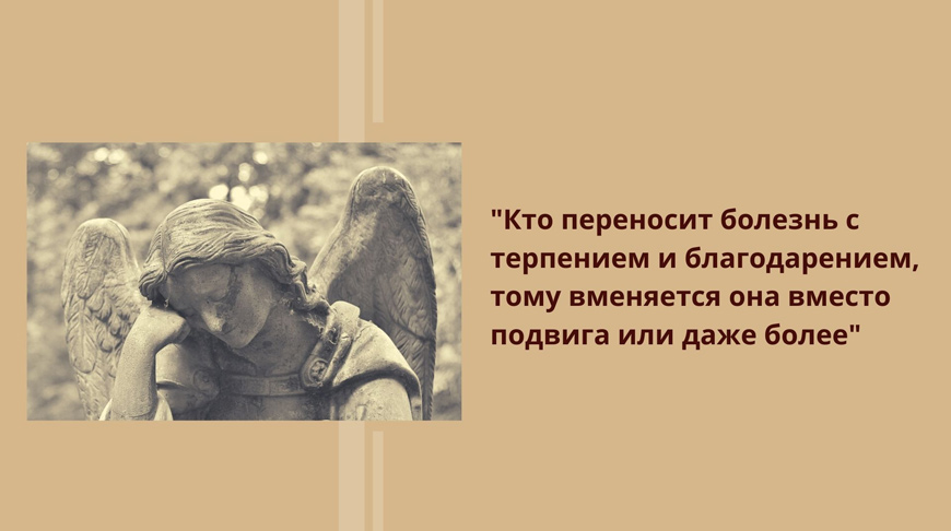 Тело есть раб души, душа - царица, а потому сие есть милосердие Господне, когда тело изнуряется болезнями; ибо от сего ослабевают страсти, и человек приходит в себя; и самая болезнь телесная раждается иногда от страстей.
