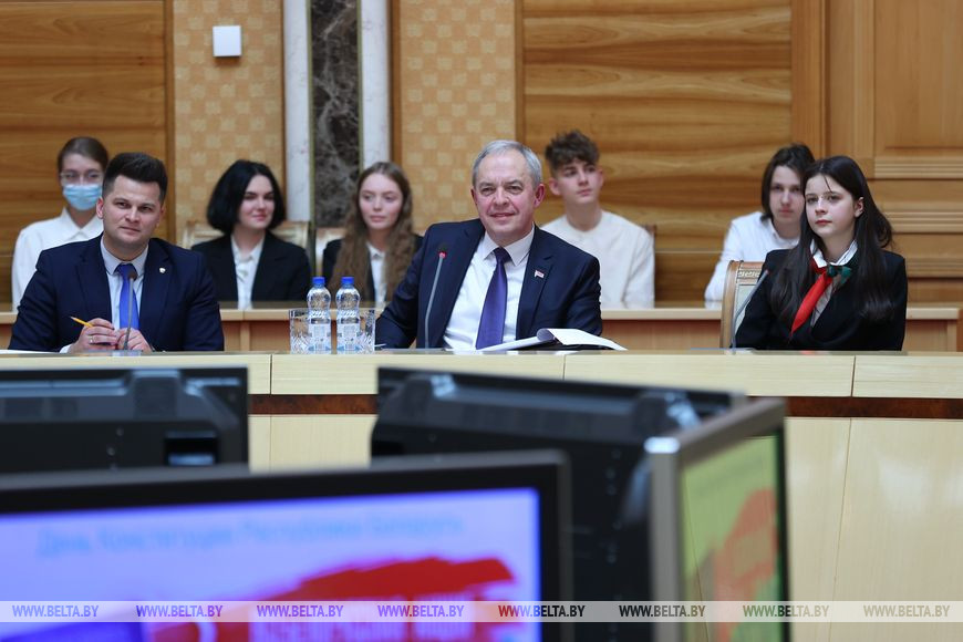 Впервые в этом году перед церемонией вручения паспортов прошел урок "Конституция - исторический выбор белорусского народа". Глава Администрации и ученики 10-11-х классов в ходе живой беседы обсудили этапы развития белорусской государственности.