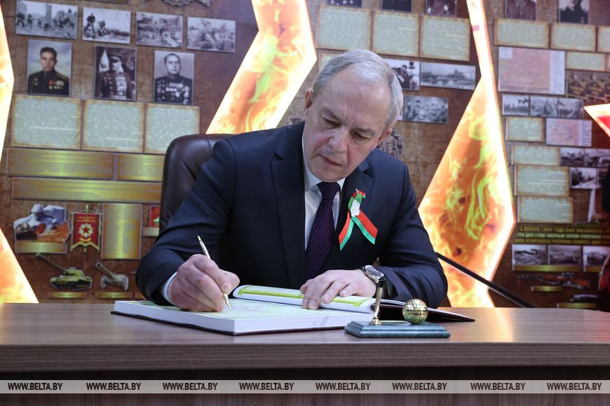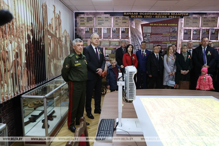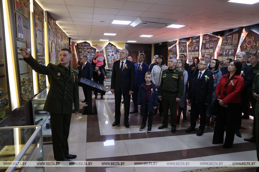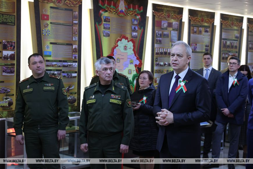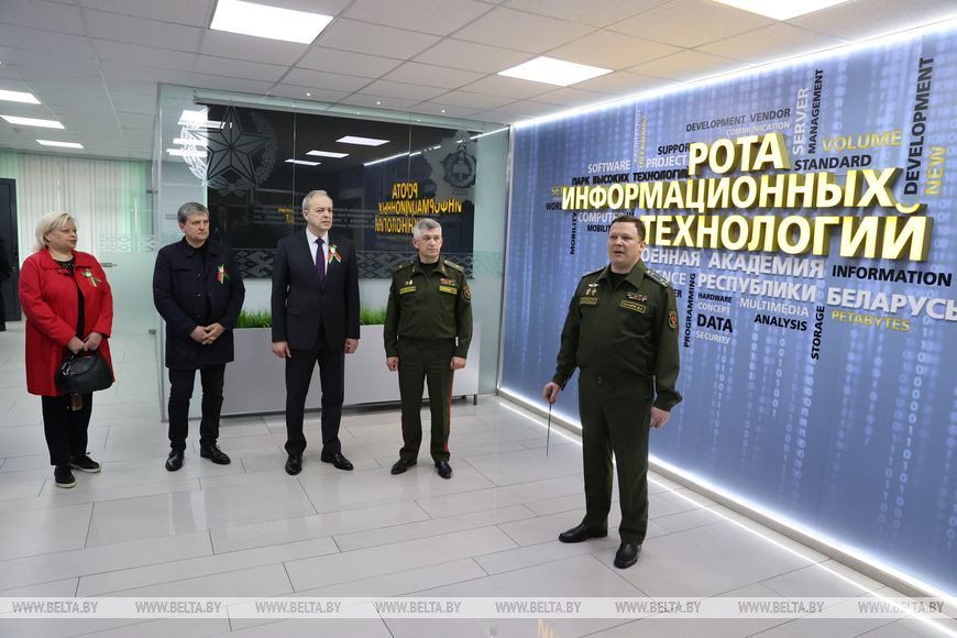 Игорь Сергеенко также посетил Военную академию, где постоянно проводится большая военно-патриотическая работа. Для главы и сотрудников Администрации Президента Беларуси была организована экскурсия в Зале военной истории, учебном классе "Багратион", учебном классе управления боем. Гости также посетили компьютерную аудиторию роты информационных технологий. Экскурсию провели курсанты и сотрудники вуза.