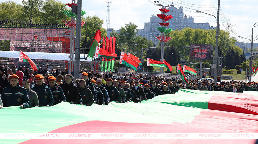 Акцию организовали республиканское общественное объединение "Белая Русь" и Федерация профсоюзов Беларуси в рамках празднования Дня Государственного флага, Государственного герба и Государственного гимна Республики Беларусь, который сегодня отмечается в Беларуси.30 лет назад, 14 мая 1995 года, по воле белорусского народа в нашей стране установлены государственные символы Республики Беларусь. В этих символах воплощается память поколений, отражаются национальное самосознание и непростой исторический путь народа, связываются воедино прошлое, настоящее и будущее белорусского государства.-0-