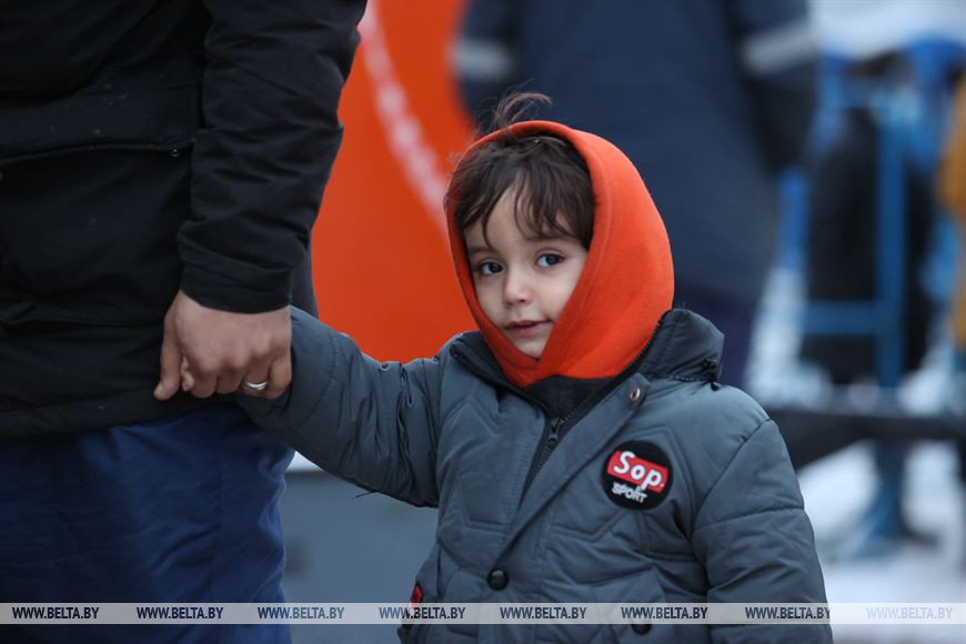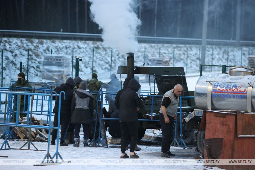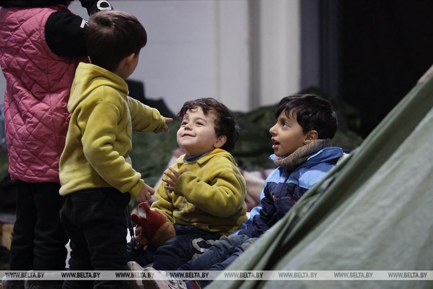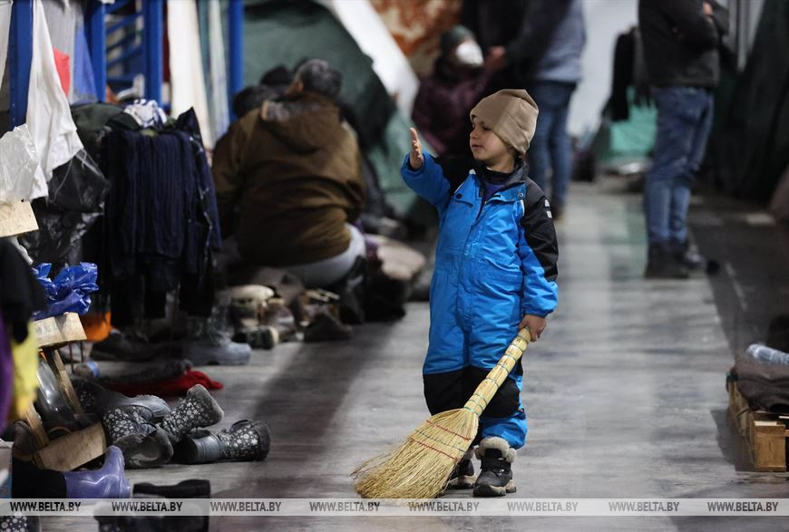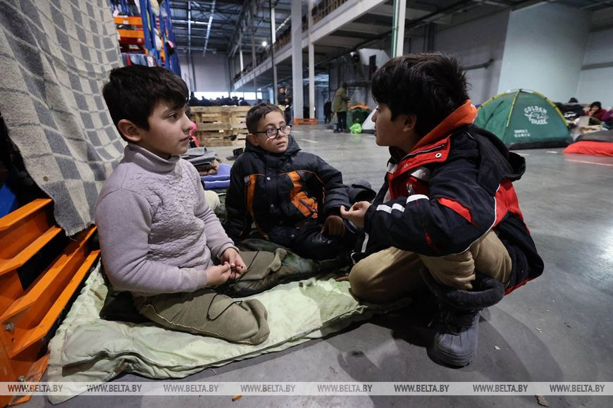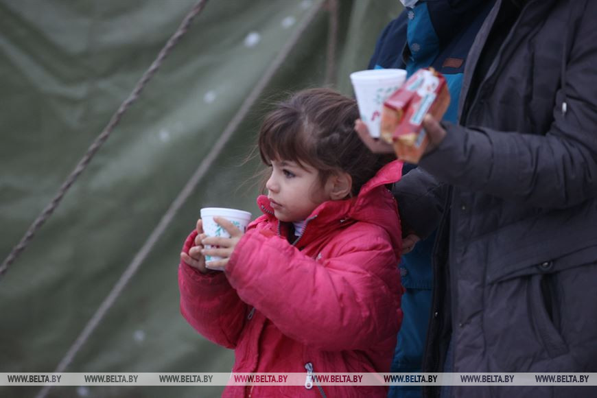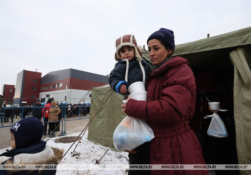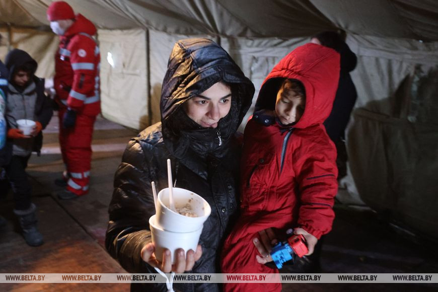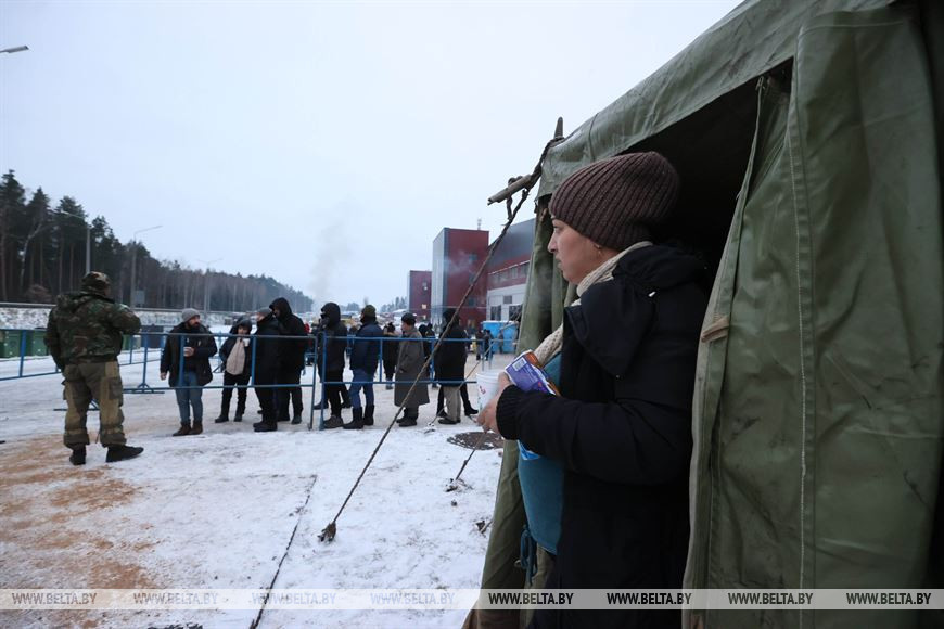 Сегодня для беженцев идет 29-й день на границе. Они находятся в пункте временного размещения в транспортно-логистическом центре неподалеку от пункта пропуска "Брузги". Беженцы обеспечиваются всем необходимым.