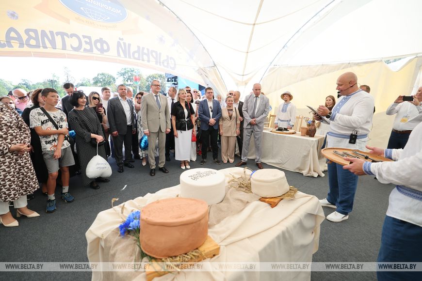 "У каждого жителя Беларуси есть свой вкус, свои любимые продукты. А вот сам фестиваль - это уже конкурс белорусских сыроделов, сыроваров, их имя, их честь", - сказал заместитель премьер-министра.