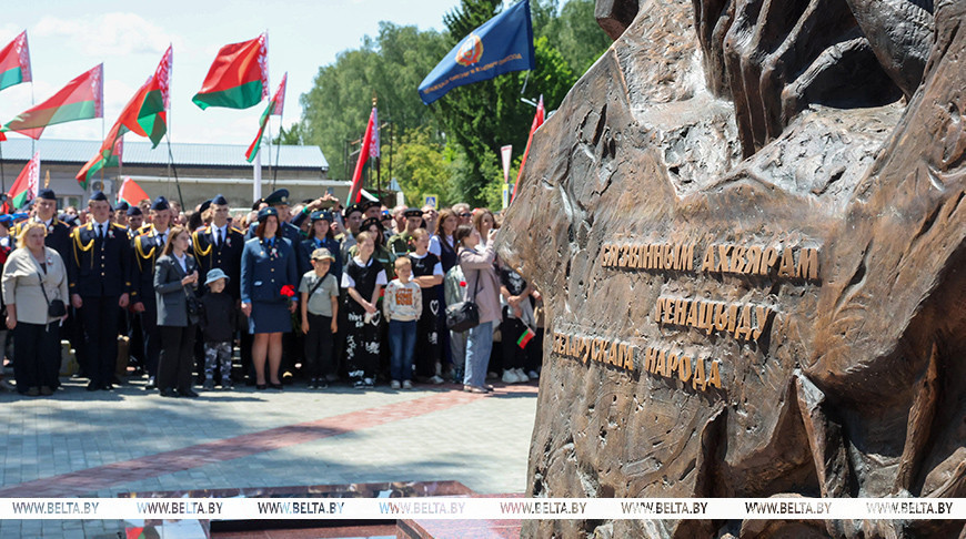 У нового памятного знака в Могилеве - братская могила, где в торжественной обстановке, воздав почести, были перезахоронены останки мирных жителей, обнаруженные в прошлом году во время работ в Казимировском лесу.