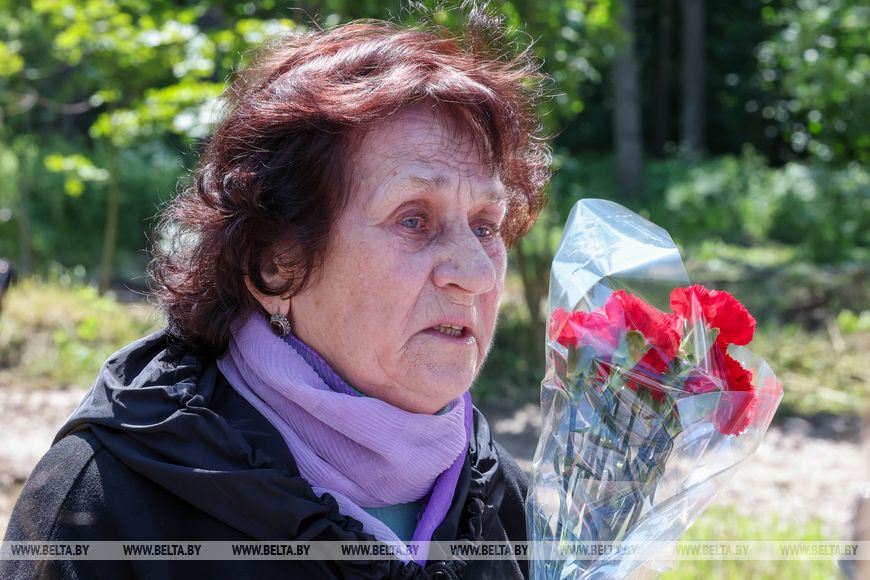 Среди тех, кто сегодня принес цветы к памятнику, - Мария Фоминична Толкачева, которой 85 лет. Ее отец на седьмой день войны пошел на фронт, а мать осталась с пятью детьми. Она всю жизнь прожила в Сараканайске, а потому этот лес для нее святое место скорби и памяти. "Здесь земля полита кровью, слезами, горем и страданиями безвинных людей. Фашисты мучили их и убивали. Самым тяжелым для нас стал июль 1941 года - об этом рассказывала мама. Наш дом стоял рядом с лесом. Бомбили так, что это был ужас. По ночам прятались в землянки, которые построили возле реки Дубровенка. Мама меня на руки брала, мне почти два года было, старшие сами шли. А самую младшую дочку мама вынуждена была оставлять в доме, ей всего несколько месяцев было, потому что нести двух детей сил у нее не было. А после бомбежки она сразу бежала домой проверять малышку Таису, - со слезами вспоминает женщина. - После того как немцы заняли Могилев, Казимировский лес стал страшным местом. Лес тут вырубили, его вывезли в Германию, а потом фашисты стали творить тут свои зверства: они копали огромные ямы, выстраивали вокруг людей и расстреливали. Взрослые, дети... Здесь кричали и плакали. А местные жители с детьми потом приходили к этим ямам: хоронили погибших, старались спасать тех, кто еще был жив. Так у нас в землянке несколько дней пряталась еврейка с маленькой девочкой - их из ямы вытащили. А потом им помогли сбежать отсюда".