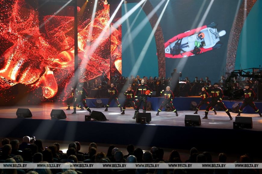 Продолжил программу концерт с участием звезд белорусской эстрады в сопровождении Президентского оркестра Республики Беларусь. Также для гостей праздничного мероприятия организована выставка современных и раритетных образцов пожарной аварийно-спасательной техники, научных разработок и спортивных достижений.-0-
