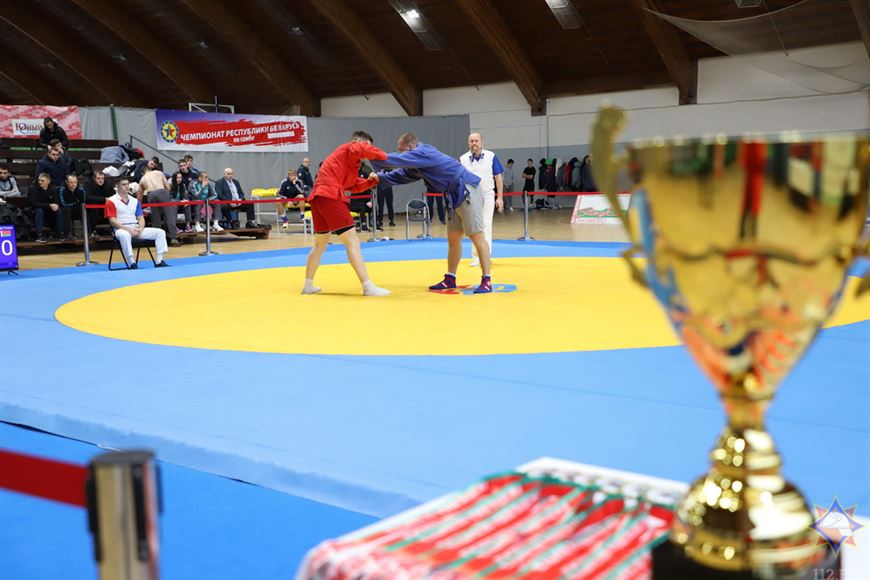 Чемпионат проводился на протяжении трех дней на базе республиканского центра олимпийской подготовки "Стайки" под Минском. В первый день спасатели демонстрировали боевые приемы, во второй - определяли лучших в схватках в весовых категориях до 64 кг, до 71 кг, до 79 кг, до 88 кг. Сегодня на ковер вышли "титаны": на арене сошлись спортсмены в весовой категории 98 и 98+. За финальными схватками наблюдал министр по чрезвычайным ситуациям Вадим Синявский.