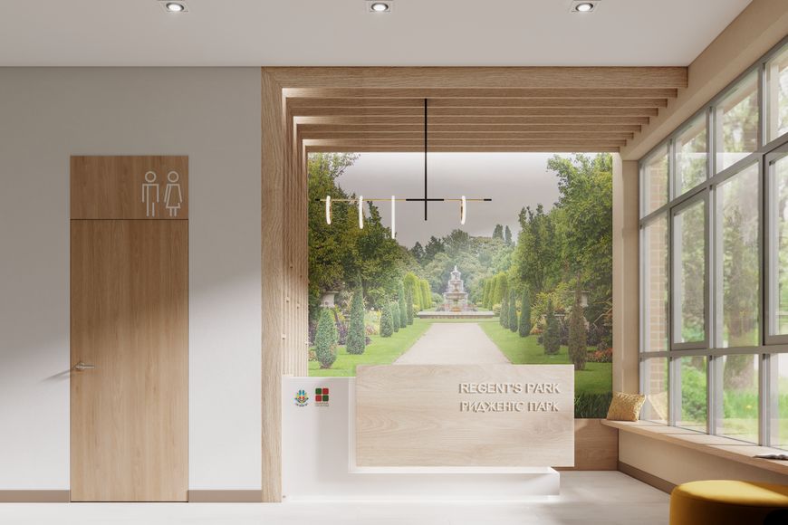 Для удобства лиц с ограниченными возможностями, любителей велоспорта и мам с колясками вход будет обустроен без ступенек (на уровне земли). Просторные и уютные, красивые и светлые дизайнерские лобби. Их площадь более 60 м². Инфраструктура лобби тщательно продумана: