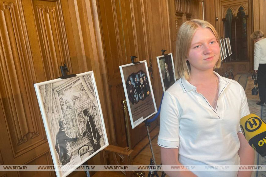 Марина Ломать из Дятловского района свою работу назвала "Подписание пакта: Дом Ермолова как свидетель истории". "Эти особняки - носители истории, они символ дипломатии. Я решила показать, что заключение соглашений в этих особняках, содержащееся в этих документах слово - это сила для решения проблем", - пояснила она свой выбор.