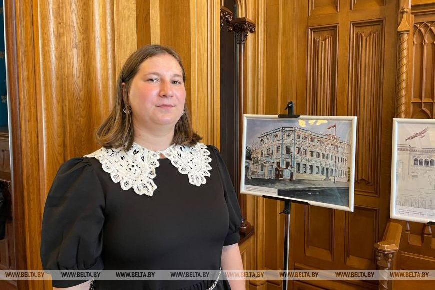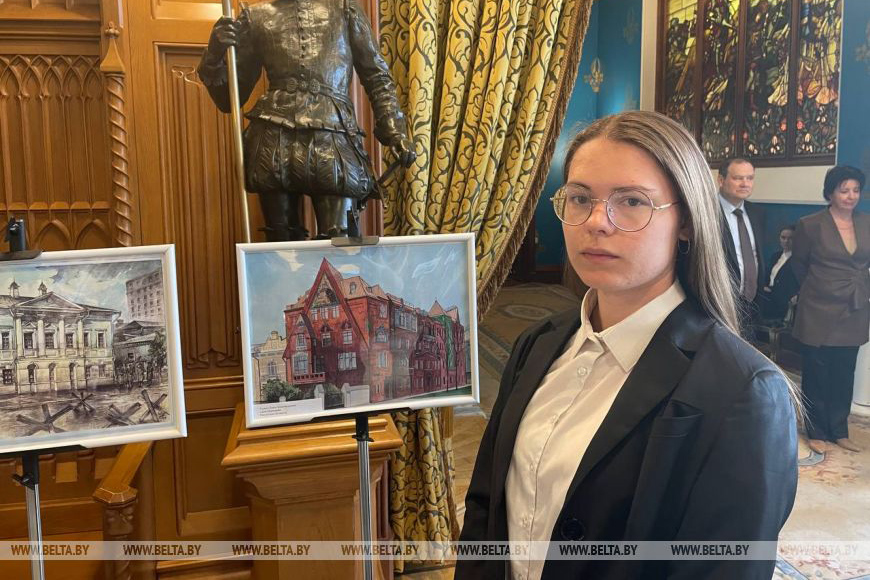 Студентка Витебского государственного университета им. П.М. Машерова Злата Толкач отправила на конкурс картину с изображением одного из московских особняков, который, как она считает, выполнен в стиле белорусской архитектуры. "Конкурс очень интересен, особенно для молодежи", - полагает она.