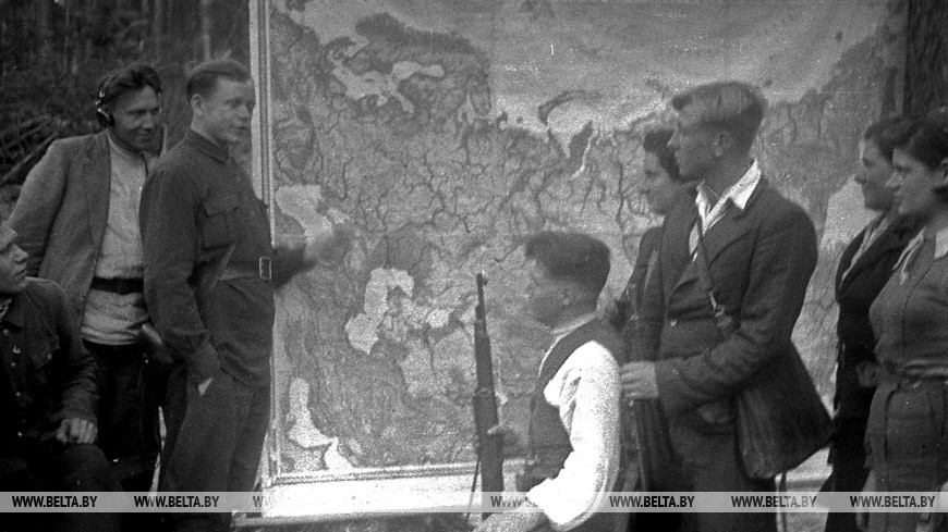 1 июня 1943 года. Партизаны Пинского соединения на политзанятиях в своём лагере. Фото Владимира Лупейко.