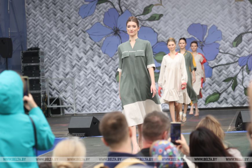 Отдельного внимания заслуживает выставка-продажа продукции предприятий легкой промышленности и коллекций дизайнерской одежды. Здесь каждый может собрать себе "лук" на лето. Свои работы представил и семейный бренд "Кашпеи". Его дизайнер Александр Кашпей рассказал, что они представили гибридную одежду, то есть ту, которая необычно и экспериментально сочетает в себе идеи и ткани. Конечно же, сегодня в них присутствует лен.