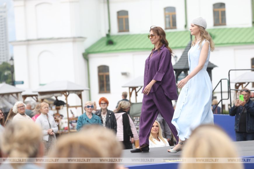 Одной из коллекций фестиваля стала работа "Льняные косы" белорусского дизайнера Анны Гружевской. "В ней соединены современная одежда и наш этнический код. Я люблю многослойную одежду, поэтому образы достаточно серьезные. А еще я собираю старину: например, в этой коллекции юбка с костяными пуговицами, которым более 150 лет. Они перешли мне по наследству от моей прабабушки. Есть лапти, которым более 100 лет. А представляют коллекцию модели 50+. Я делаю моду не на продажу, мой показ - модное шоу", - рассказала она. Кстати, Анна Гружевская не только показала свои дизайнерские работы, но и представила очень необычных тканевых кукол на выставке.