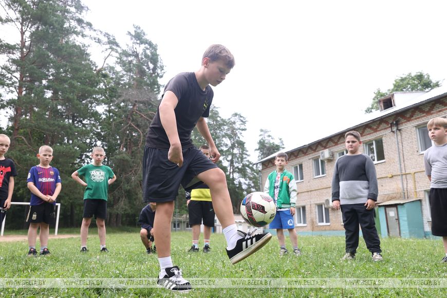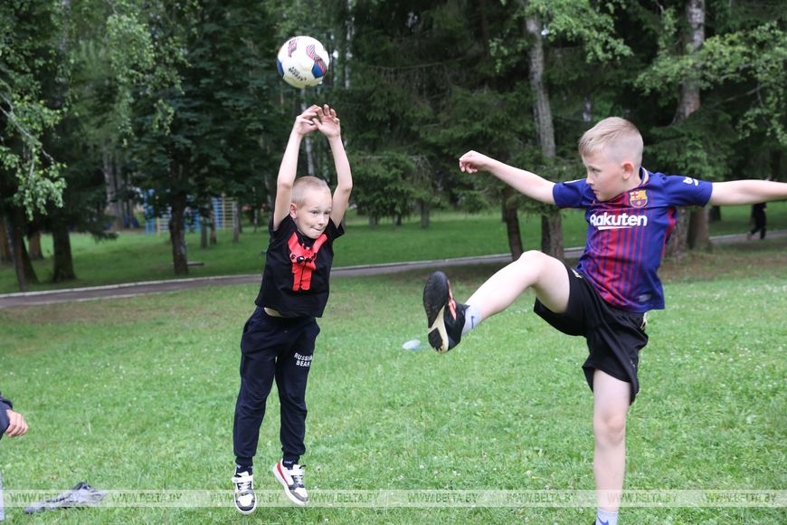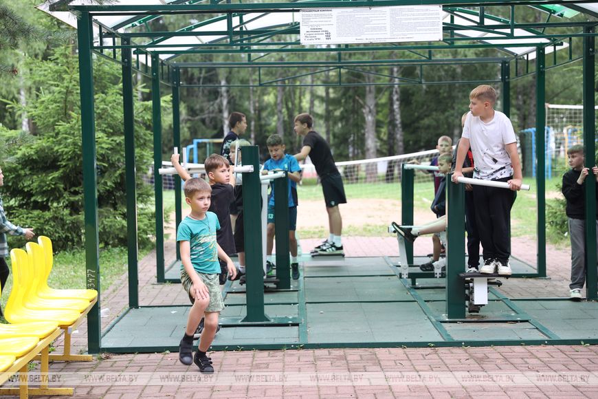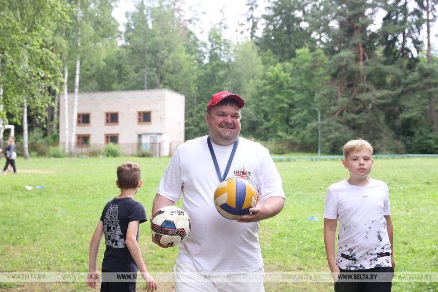 Оздоровительный лагерь "Оптимист" находится в ведомстве Минского тракторного завода и на оздоровление сюда приезжают в основном дети работников машиностроительного предприятия. Завод, в свою очередь, старается развивать его материально-техническую базу, создавая комфортные бытовые условия, обновляя пищеблок, вкладывая средства в закупку инвентаря и благоустройство территории. Кстати, один из последних проектов - это новая площадка с тренажерами, где заниматься спортом можно, вдыхая насыщенный сосновыми фитонцидами воздух. Да и сама просторная территория лагеря способствует активностям ребят, которые, приехав сюда, уже через один-два дня забывают о существовании гаджетов. Как рассказала директор Анастасия Кутеева, в этом году в "Оптимисте" за лето отработают пять смен по 15 дней в каждой. В одну смену здесь принимают по 90 ребят от 6 до 16 лет.