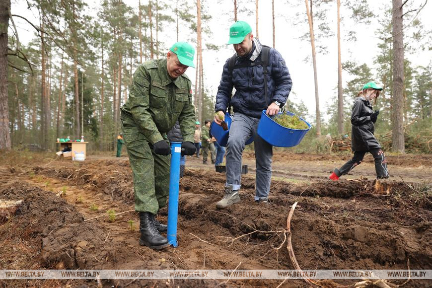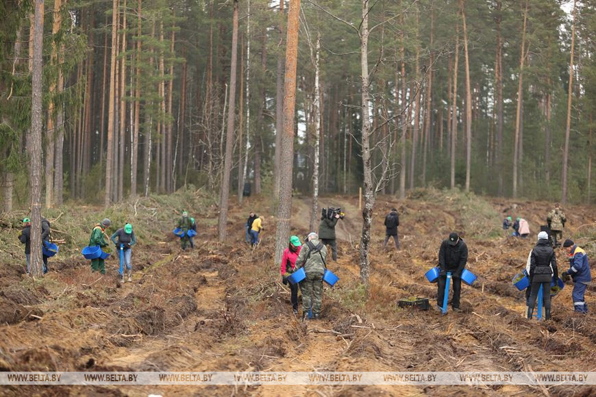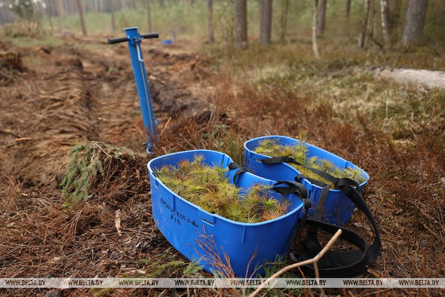 По словам первого заместителя министра лесного хозяйства Валентина Шатравко, в прошлом году на этом участке леса были проведены рубки главного пользования. "Лес достиг своей спелости, мы собрали урожай. Соответственно, сразу после рубки восстанавливаем этот участок, - рассказал он. - Мы выращиваем около 23 млн посадочного материала с закрытой корневой системой, что позволяет покрывать лесными культурами площадь в 6-6,5 тыс. га. Для этого используются посадочные трубы потипутки. Это технология, применяемая по всему миру, которая позволяет обеспечить стопроцентную приживаемость высаживаемых деревьев". -0-
