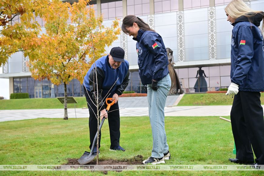 Накануне 105-летия ВЛКСМ и 10-летия открытия Дворца Независимости Президент Беларуси Александр Лукашенко провел встречу с молодежным активом. Знаменательно, что на территории Дворца Независимости представители различных поколений: молодежь и актив БРСМ, почетные ветераны, юные пионеры Беларуси вместе с главой государства заложили Аллею поколений.