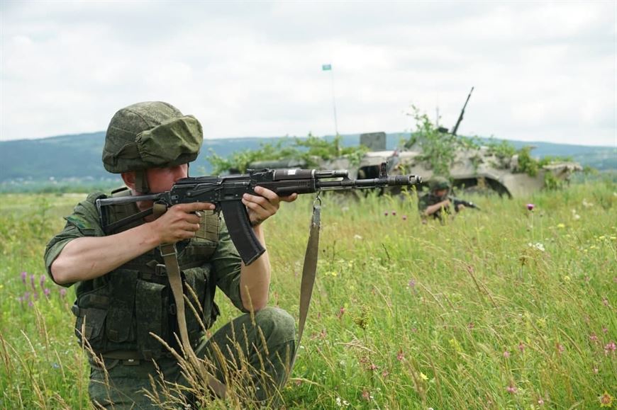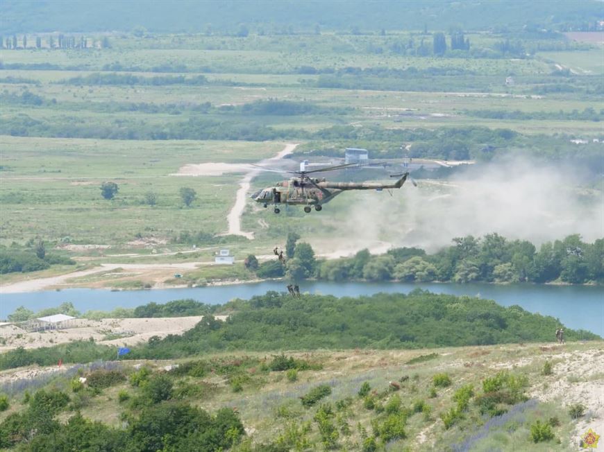 По легенде маневров военнослужащим международной тактической группировки необходимо обнаружить и уничтожить базовый лагерь террористов в назначенном районе ответственности, освободить захваченный населенный пункт, совершить прыжки из вертолетов Ми-8АМТШ, в том числе беспарашютным способом - с применением альпинистского снаряжения, а также преодолеть водные преграды.-0-