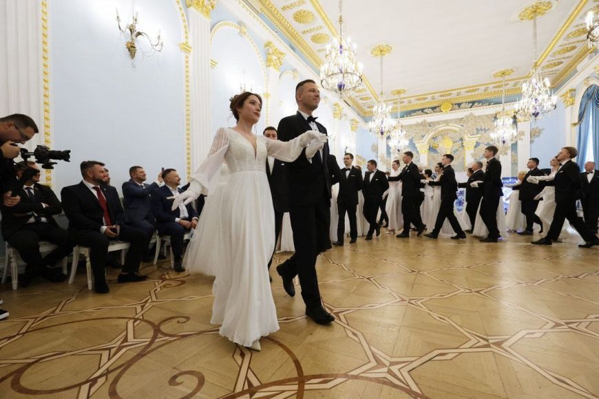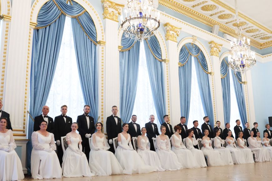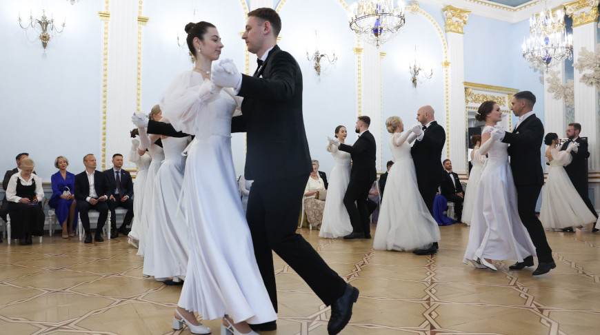 Первым танцем на балу стал полонез. Как отметил ведущий, именно он до сих пор традиционно открывает их по всему миру. Танец представлял собой своеобразное шествие в ускоренном темпе, как представление участников бала.