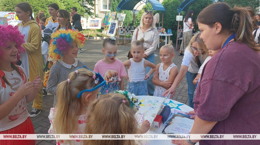 На праздник пришло очень много гостей. От количества локаций и всевозможных действий во дворе центра просто разбегались глаза: везде яркие детские рисунки, рядом бегают малыши в больших очках и разноцветных париках, а на фоне играют знакомые родителям и детям песни - их пришли спеть ученики центра. Зрители подпевали хитам, хлопали и танцевали. И взрослые веселились не меньше, чем ребята, знакомились с другими семьями, рассказывали им о конкурсах, в которых уже поучаствовали. И это все было уже после большого концерта, который отгремел вначале.