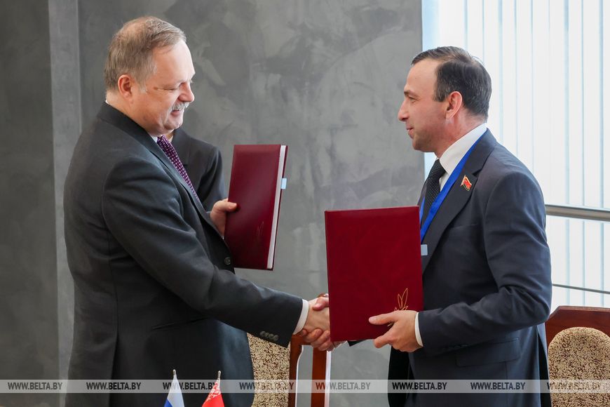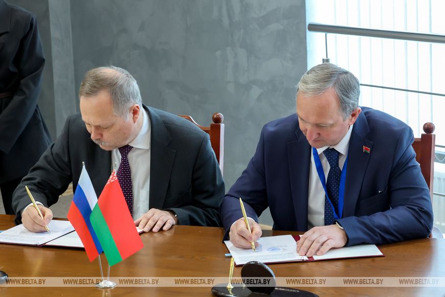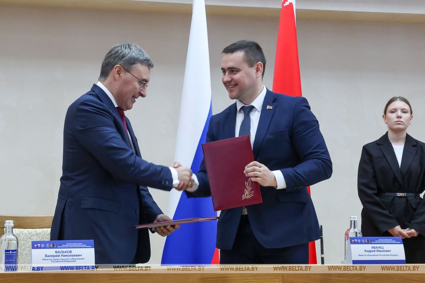 По итогам совместного заседания в стенах БРУ был подписан целый ряд документов: протокол совместного заседания коллегий Министерства образования Республики Беларусь, Министерства просвещения и Министерства науки и высшего образования Российской Федерации, а также соглашения между ведущими университетами двух стран: БГУ, БНТУ, БГУИР и МГТУ им. Н.Э. Баумана.-0-