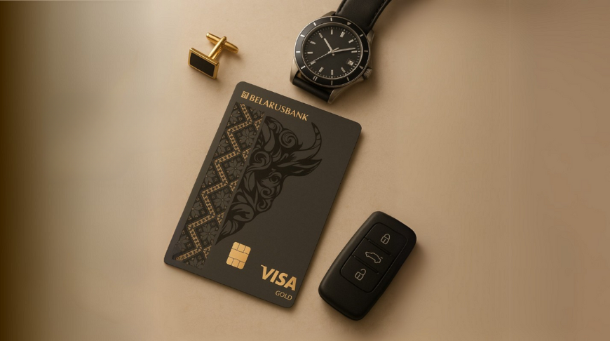 Среди главных преимуществ - возможность управления своими финансами и выбор "Любимой категории" для получения повышенного мани-бэка, а также лаконичный дизайн карты Visa Gold с отсылкой к национальной идентичности. На лицевой стороне изображен символ Беларуси - зубр, который словно выглядывает из-за орнамента и символизирует мощь и силу, а также финансовую независимость обладателя карты.