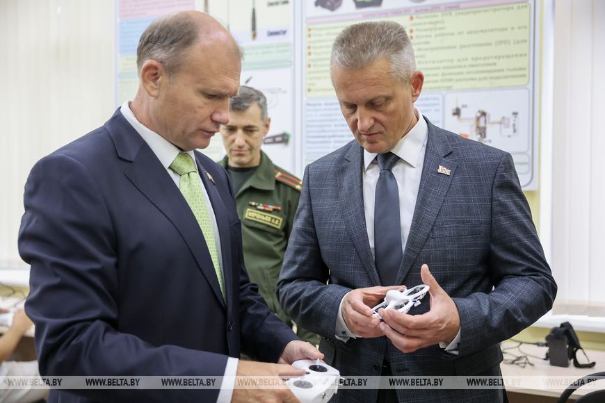 "Этот учебный центр обладает самыми современными технологиями по управлению беспилотными летающими аппаратами. Я думаю, что вы все научитесь управлять БПЛА и получите дополнительные компетенции, которые позволят вам стать высококвалифицированными специалистами", - обратился ректор Белорусской государственной академии связи Андрей Зеневич к учащимся.-0-