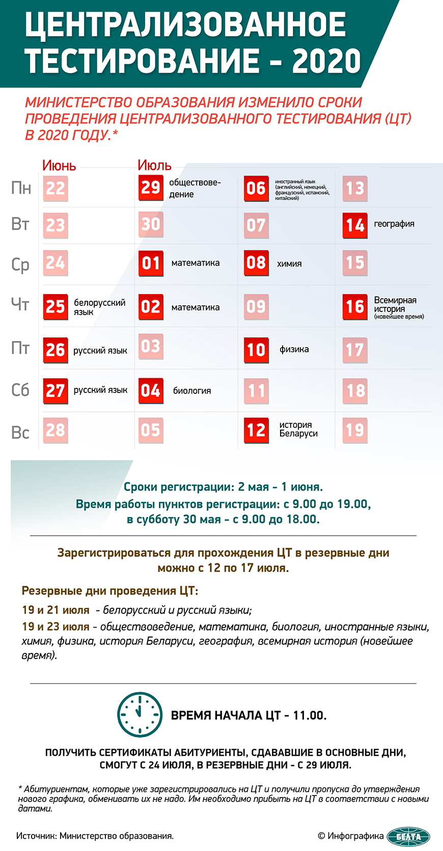 Следующее испытание - по истории Беларуси - пройдет 12 июля. Всего на ЦТ в Беларуси зарегистрировались более 64 тыс. человек.-0-