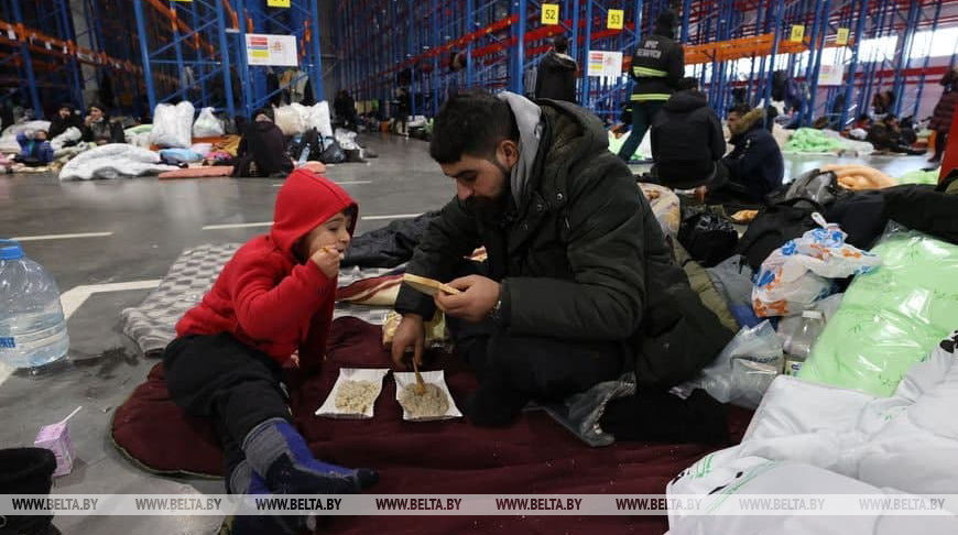 16 ноября выдано 3 т продуктов, 0,5 т хлебобулочных изделий, 760 одеял, 800 матрасов, 300 подушек, 1250 единиц одежды. Для тысячи мигрантов, размещенных в логистическом центре, организовано горячее питание.