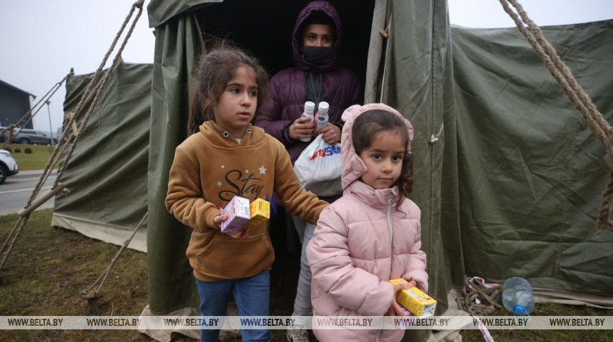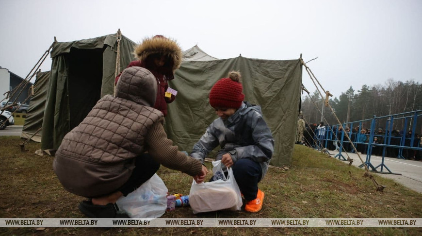 "С 9 по 15 ноября Белорусский Красный Крест передал мигрантам около 30 т продуктов, 7 т воды, а также 4450 предметов теплой одежды, 1520 пледов и одеял", - добавили в объединении.