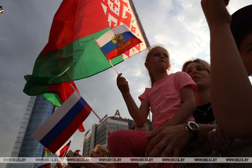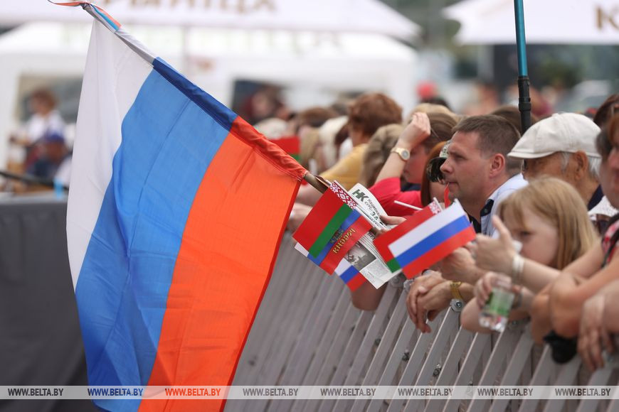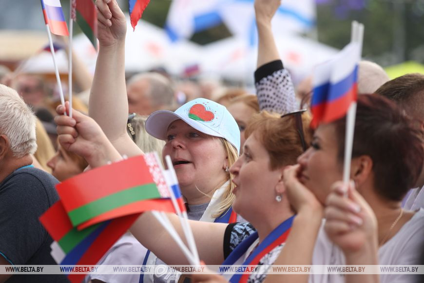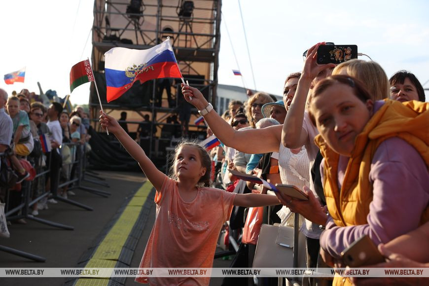 На сцене выступили известные российские и белорусские эстрадные исполнители. Для гостей праздника работал фуд-корт, торговые ряды. Многие зрители приходили с двумя флагами - белорусским и российским.