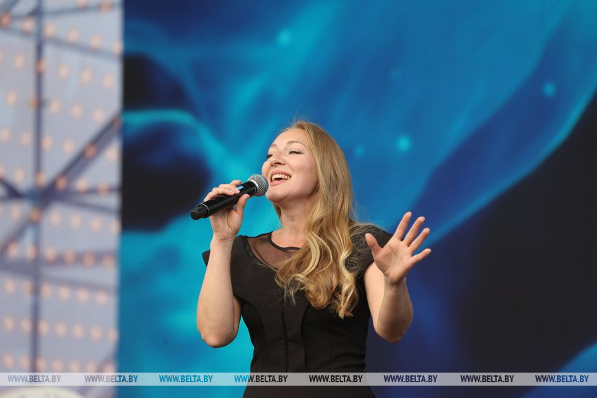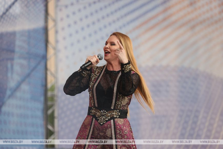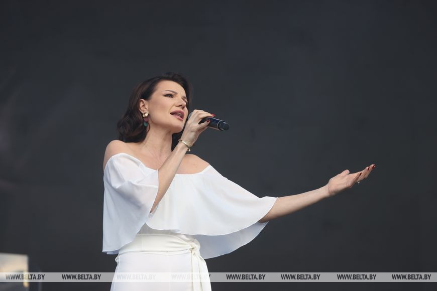 Бурей аплодисментов минчане и гости столицы встретили незабываемую "Катюшу" в исполнении российской певицы Варвары.