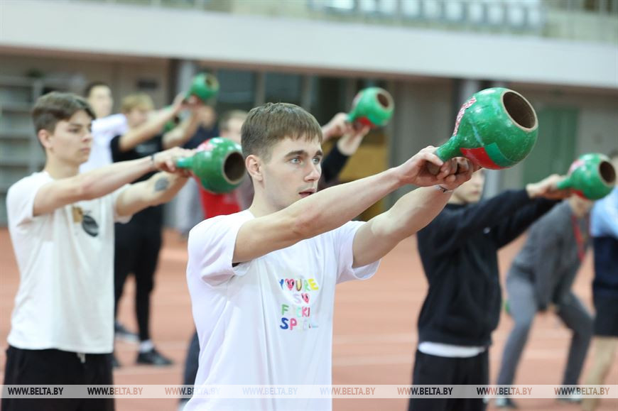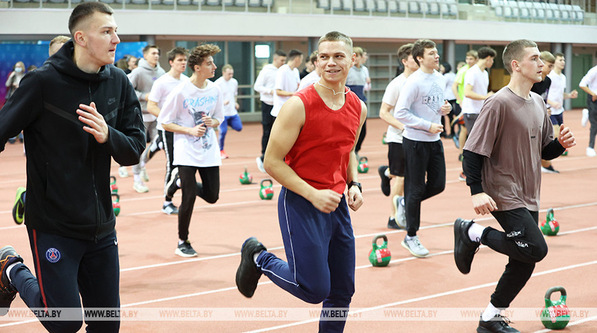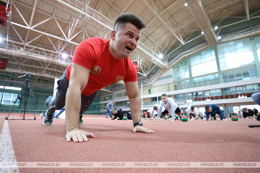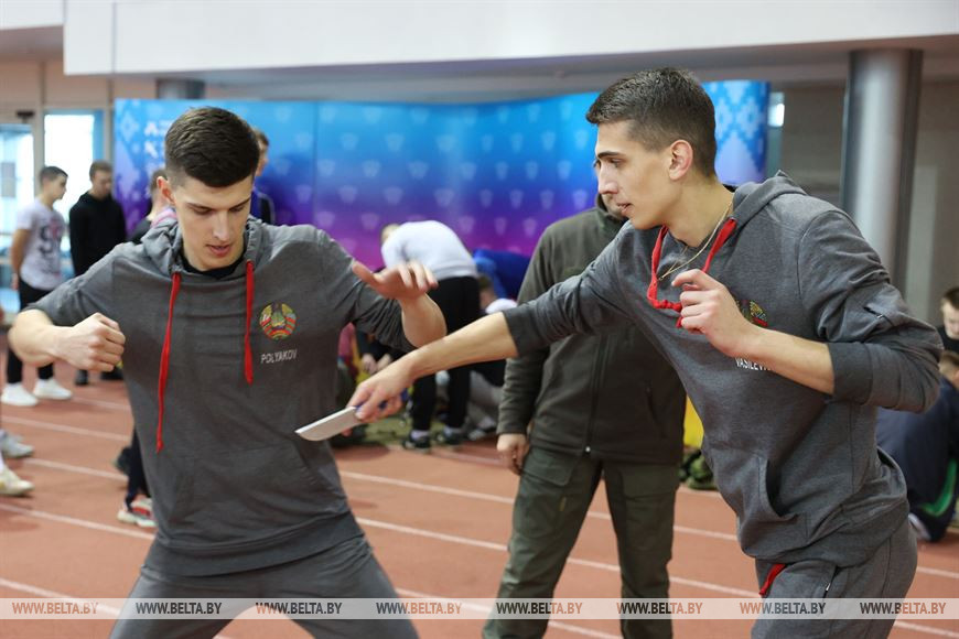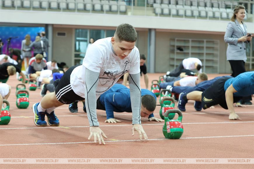 В рамках марафона Благотворительный фонд Алексея Талая и БРСМ организовали в Легкоатлетическом манеже Белорусского государственного университета физической культуры "Курс молодого бойца" для представителей молодежных отрядов охраны правопорядка и актива БРСМ учреждений высшего образования Минска. В программе патриотического мероприятия - "Народная зарядка" с бронзовым призером Олимпийских игр Максимом Недосековым и мастер-классы по гиревому спорту от председателя Международной федерации по гиревому спорту многократного чемпиона мира мастера спорта Евгения Назаревича, по ударной технике для ММА (стойка, передвижения, элементы ударов) от инструктора по смешанным боевым искусствам ММА, тренера золотых, серебряных и бронзовых призеров мира Антона Рыбченка, по начальной военной подготовке (военная амуниция, разборка/сборка АК-74, рукопашный бой против ножа и пистолета, военная акробатика) от председателя ОО "Город без наркотиков", инструктора по рукопашному бою и военной подготовке Петра Шапко.