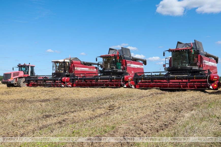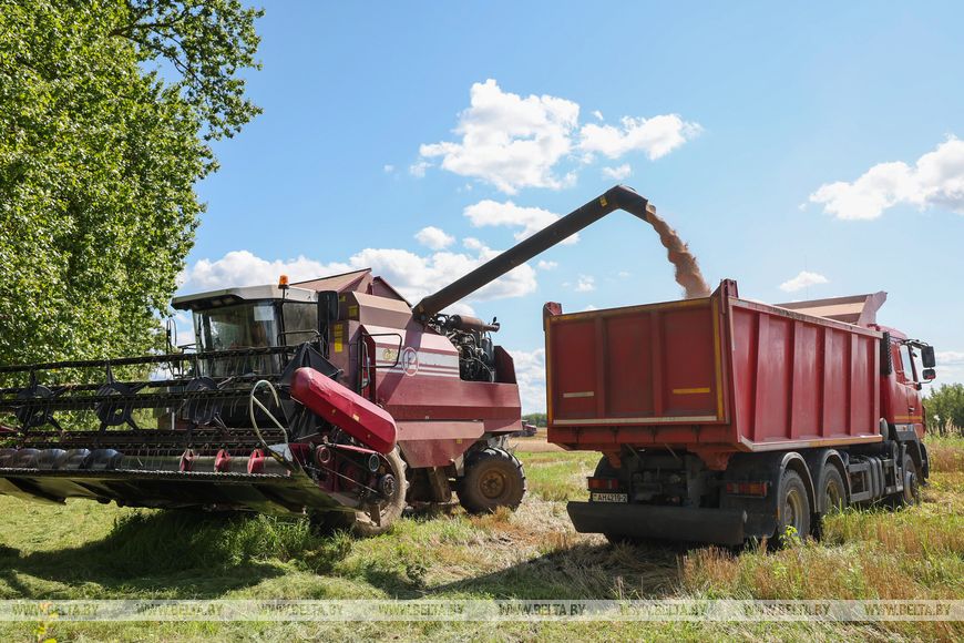 На Городокщине убрано 37% площадей, все 26 комбайнов, которые имеются у сельхозпредприятий района, работают в полях. "Мы полностью обеспечены техникой на отвозке зерна. Механизаторов хватает, уже не первый год на время уборочной приезжают помогать работники других организаций района, Витебска. Работаем по всем культурам - добираем озимый рапс, убираем озимые овес, пшеницу, рожь, ячмень, начали убирать яровые культуры. Уборка осложняется тем, что приходится работать в достаточно экстремальных условиях - не везде еще зерноуборочная техника может зайти, в полях вместе с комбайнами дежурят тягачи, чтобы оперативно вытаскивать комбайны, которые застревают. В принципе озимый урожай в этом году неплохой, культуры показали себя хорошо, перезимовали неплохо", - проинформировал первый заместитель председателя - начальник управления по сельскому хозяйству и продовольствию Городокского райисполкома Алексей Орлов.