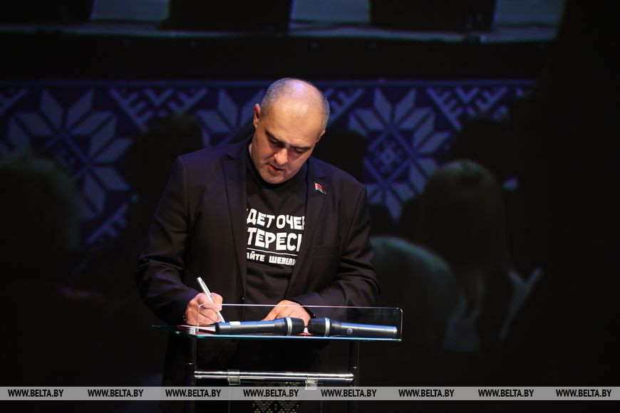 "Как представители белорусского народа подтверждаем приверженность принципам социальной справедливости, заботы о человеке, ценности созидательного труда как источника благополучия. Цивилизационный и геополитический выбор Беларуси определен столетиями отечественной истории. Наше общее с Россией Союзное государство - пример успешного интеграционного строительства при сохранении независимости и суверенитета. Убеждены, что и в Украине вскоре воцарится мир, и она вернется в семью братских славянских народов. Реальную угрозу мирному развитию многих государств и народов сегодня представляет коллективный Запад, порождая конфликты и очаги военной напряженности. Альтернативой такой глобальной гегемонии является новый многополярный мир, основанный на равноправии стран и народов. Мы за справедливость и право на достойную жизнь для всех, а не для избранных", - озвучил текст документа Олег Романов.