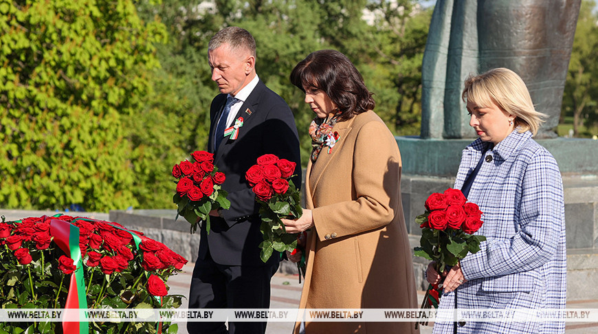25 апреля, Минск /Корр. БЕЛТА/. Участники конференции "Женское лицо Победы" возложили цветы к стеле "Минск - город-герой". Конференция проводилась под эгидой Совета Республики совместно с Белорусским союзом женщин.-0-