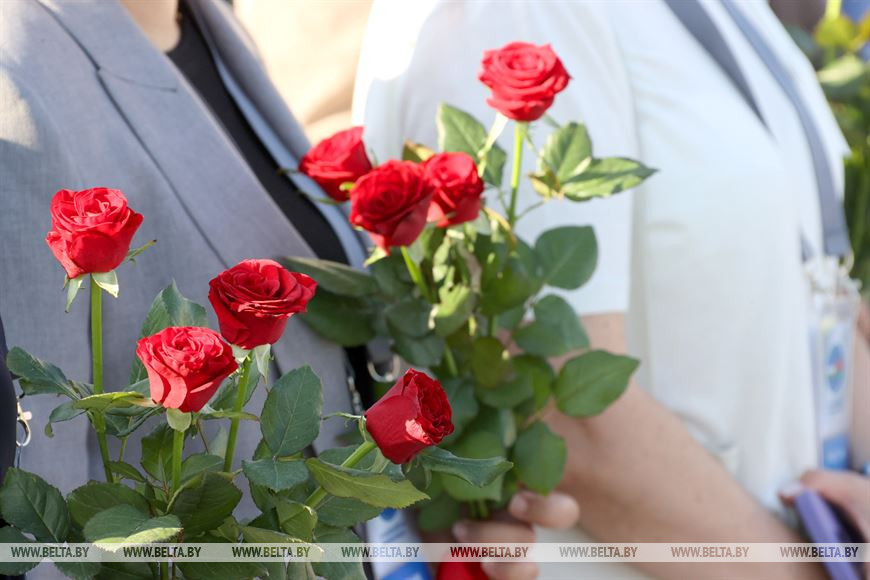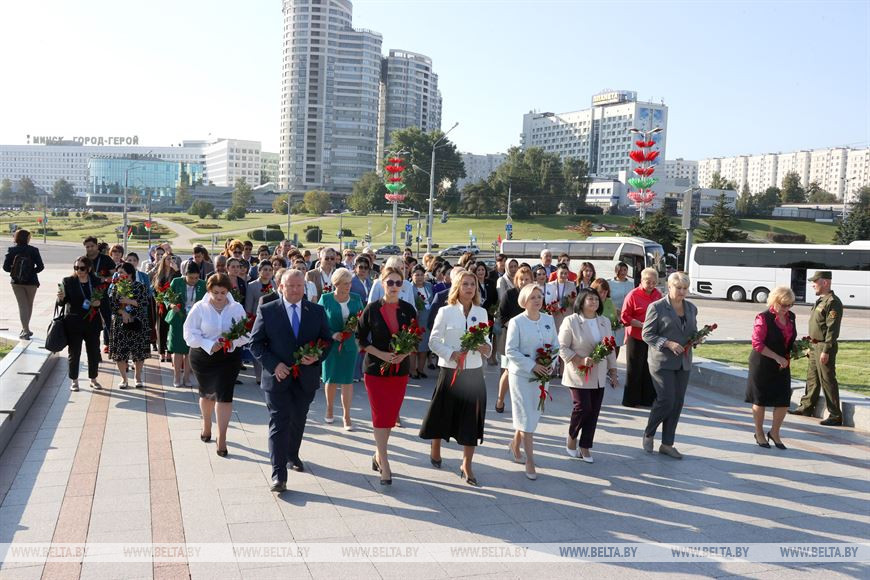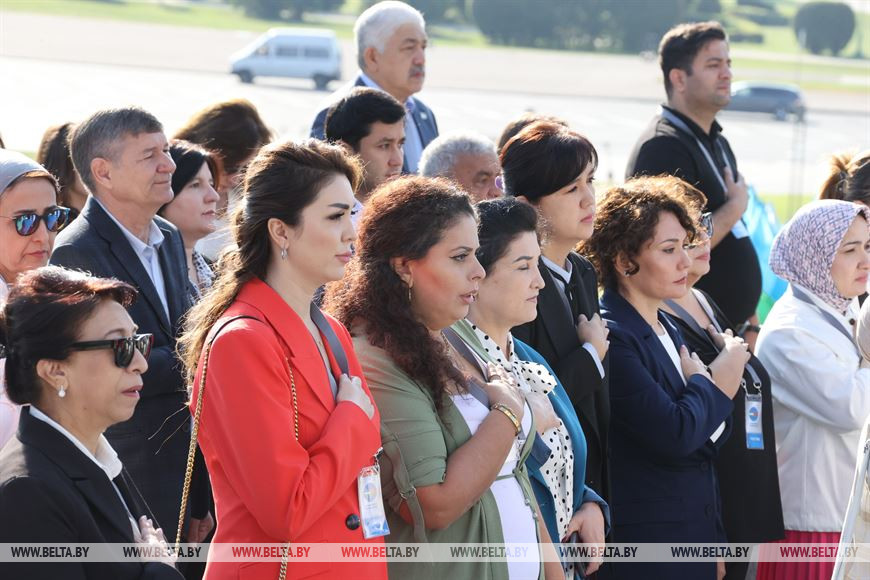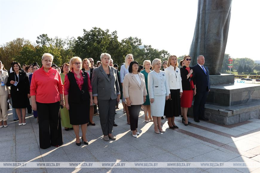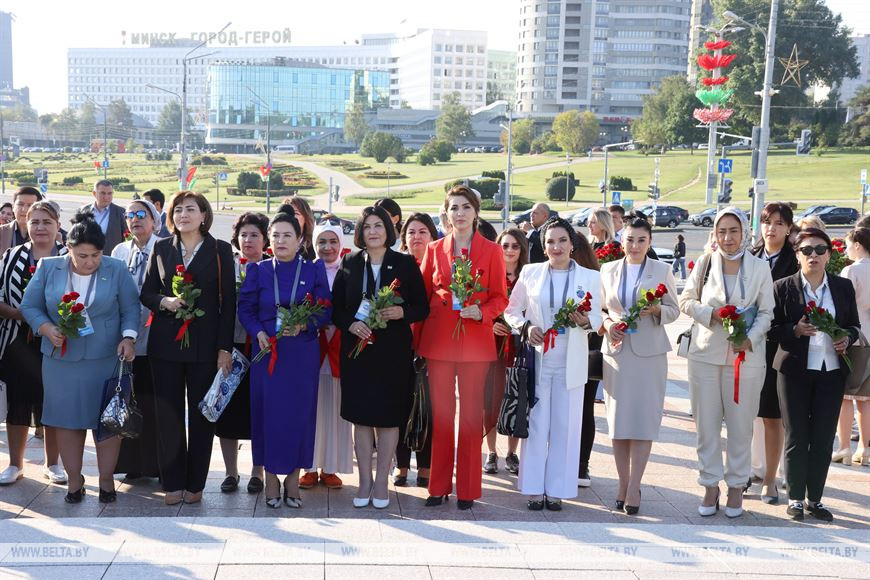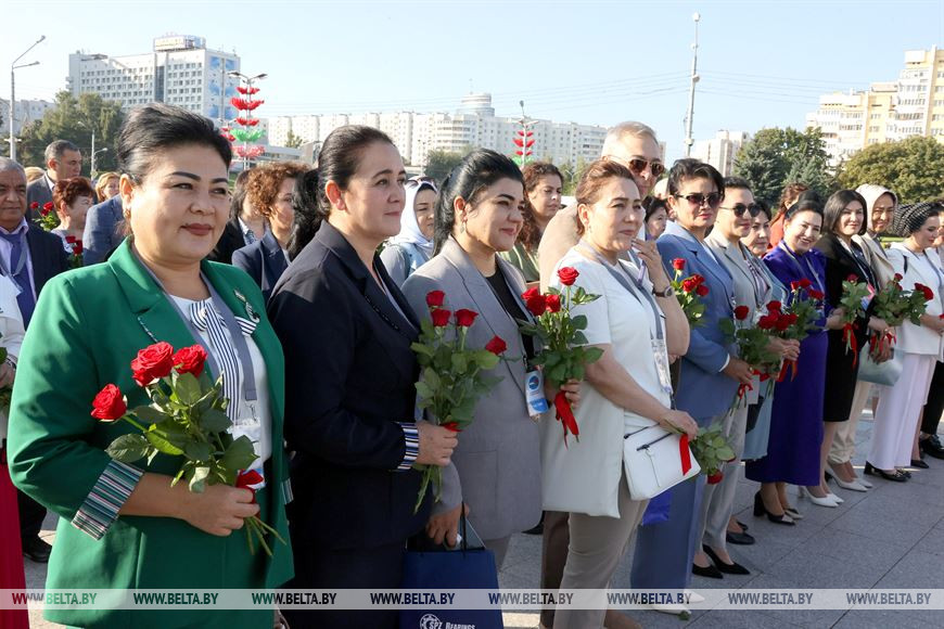 6 сентября, Минск /Корр. БЕЛТА/. В преддверии пленарного заседания участники Первого белорусско-узбекского женского бизнес-форума возложили цветы к стеле "Минск - город-герой".-0-
