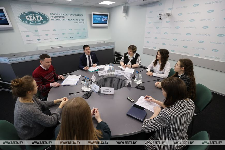 19 марта, Минск /Корр. БЕЛТА/. Во время круглого стола "Подготовка и проведение патриотического проекта "Поезд Памяти" в пресс-центре БЕЛТА участница проекта этого года учащаяся Минского государственного областного лицея Любовь Михайлович призналась, что, благодаря проекту, хочет углубить знания о героическом прошлом Беларуси и России.