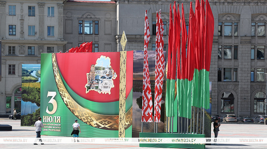 2 июля, Минск /Корр. БЕЛТА/. Главные площади и проспекты города Минска украсили в преддверии Дня Независимости. На улицах установлены тематические стенды и фотозоны.-0-