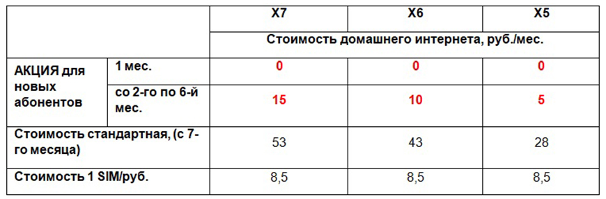Кроме того, абоненты услуги "Х5" могут дополнительно подключить одну, "X6" –две, а "X7" – четыре SIM-карты с безлимитом мобильного интернета и звонков во все сети. Оплата за каждую составит 8,5 руб. в месяц.
