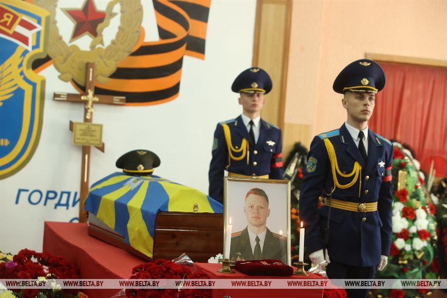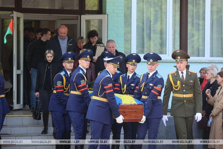 Церемония прощания проходила с отданием воинских почестей погибшим. Их в сопровождении почетного караула пронесли через живой коридор. Андрея Ничипорчика похоронят в Лиде. Тело Никиты Куконенко воздушным транспортом направят на родину в Полоцкий район.